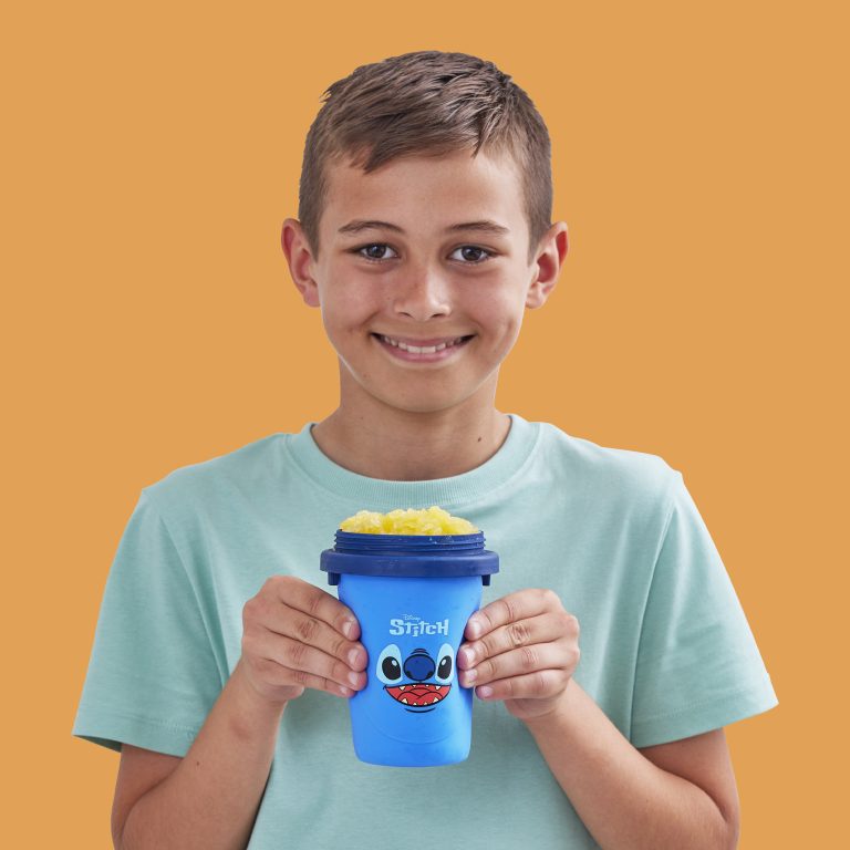 The ChillFactor Disney Stitch Slushy Maker allows you to make delicious slushies’ in seconds! No ice, no blenders, no mess! Easy to use, all you have to do is put in the freezer, wait for it to freeze then add your preferred chilled drink and squeeze! Right before your eyes you will see slushy appear in seconds! Simply freeze, squeeze and enjoy!